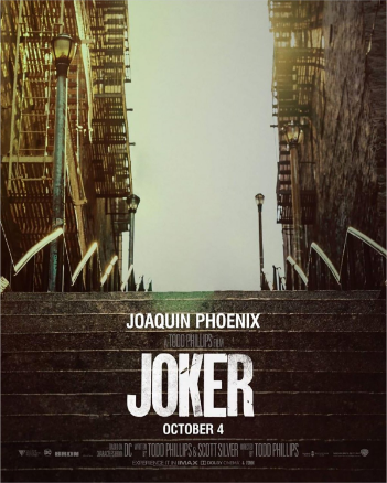 ‘조커 (2019)’ 포스터에는 주인공인 조커는 사라지고 조커가 있던 계단만이 남아있습니다.