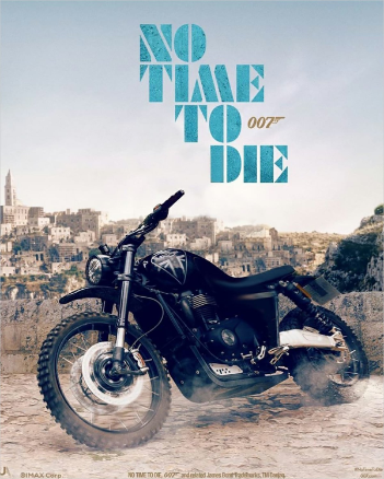 ‘007 : 노 타임 투 다이 (2020)’ 포스터에는 오토바이를 타고 있던 남자 주인공은 사라진채 오토바이만 그대로 남아있습니다.