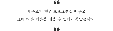 학생 개개인별로 지도를 해 학업수준이 뒤떨어지는 교육생들도 잘 따라갈 수 있게 해줘서 아주 좋은 것 같습니다.