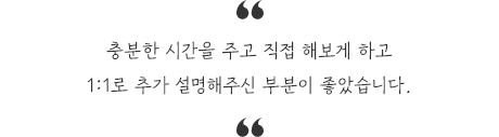 선생님께서 꼼꼼하고 세심하게 챙겨주셔서 배우는데, 큰 어려움 없이 따라갈 수 있었습니다.