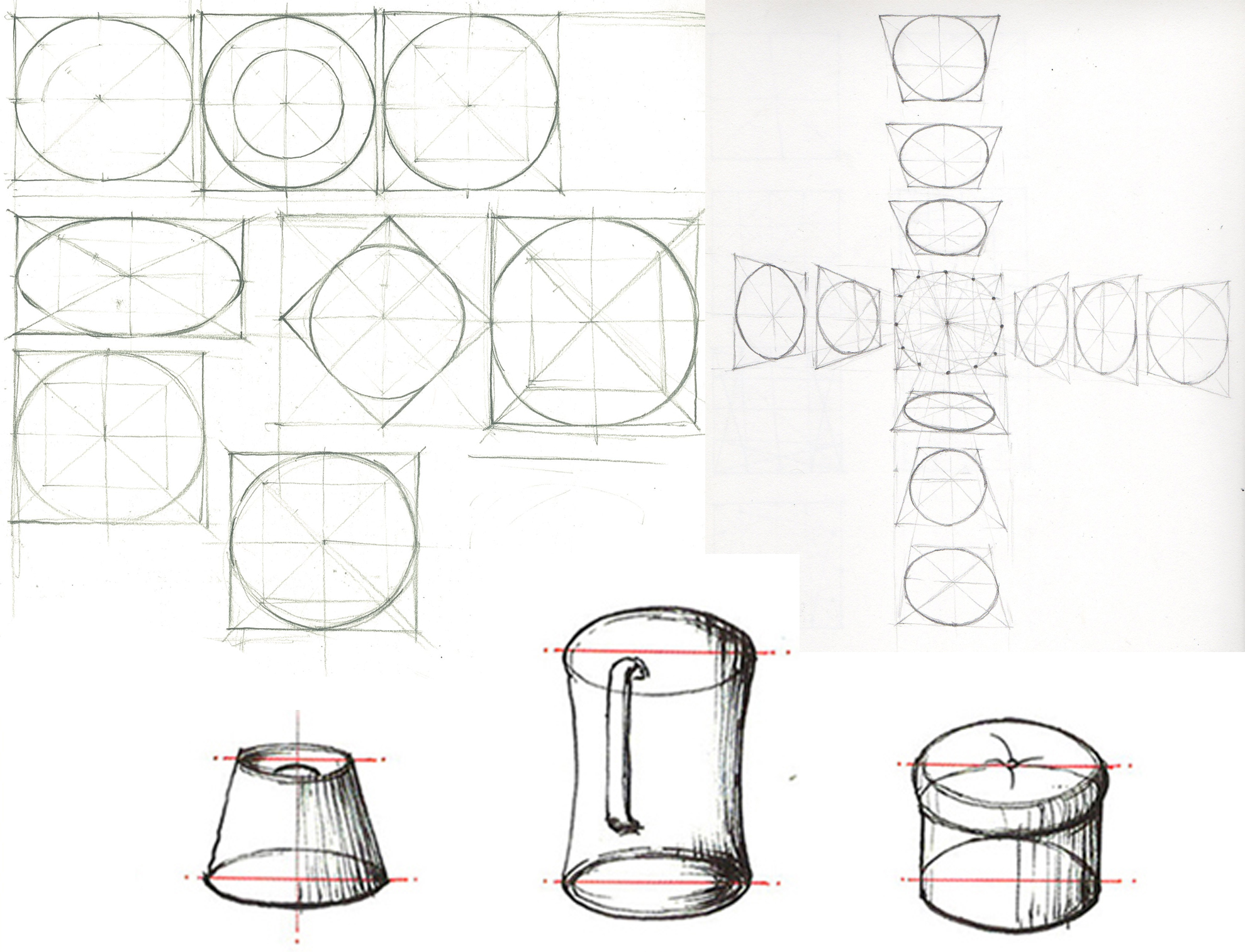 | - 다양한 선 연습을 통해 자신만의 선을 찾을 수 있다.(ex. 가로,세로,사선, 강약선, 자유로운 곡선..)- 보여지는 면을 눈대중으로 분할하는 감각을 익혀 정확한 도형을 그릴 수 있다.(ex. 정사각형, 직사각형, 삼각형, 마름모, 사다리 꼴..) | 여러 가지 원의 형태로 시점에 따라 다양한 사물을 그릴 수 있다.(ex. 조명, 의자, 컵..) | ||