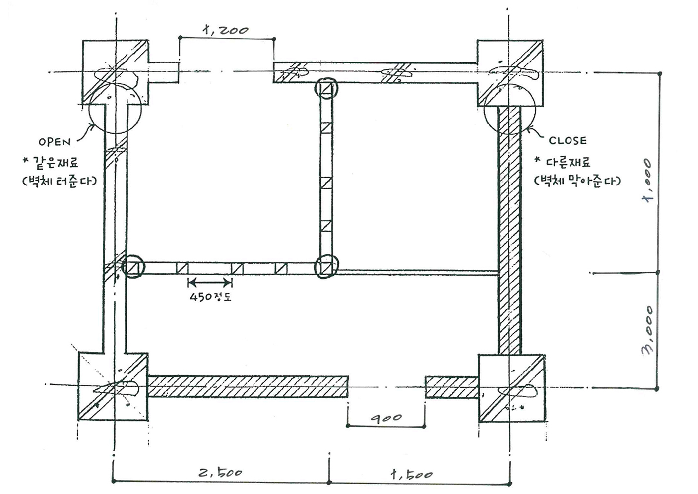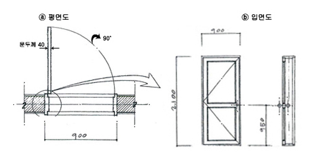 | 벽체의 종류와 표현법을 이해하고, 응용하여 구조를 작도할 수 있다. | 개구부(문, 창문)의 설계 기호 표현법을 이해하고, 작도할 수 있다. | ||